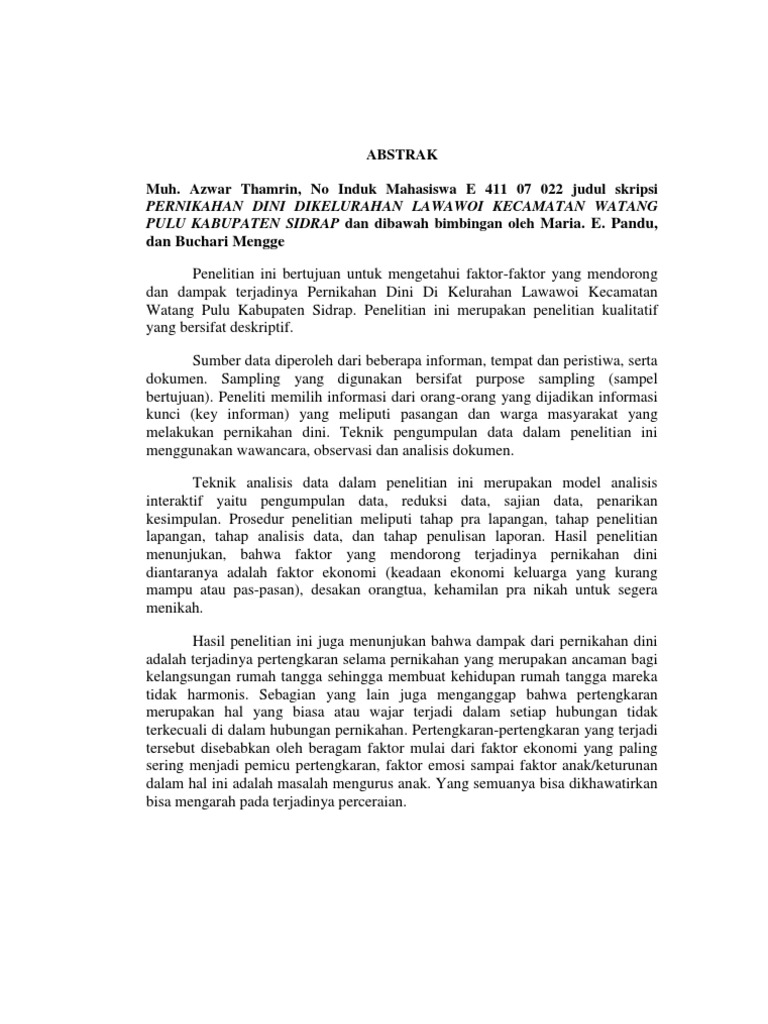 Abstrak adalah representasi dari isi dokumen yang singkat dan tepat dan contoh abstrak biasanya mendeskripsikan suatu penelitian secara singkat dan sistematika yang dimulai dari nama peneliti nomor pokokinduk mahasiswa jika si peneliti seorang mahasiswa judul penelitian rumusan masalah teori teori metode penelitian variabel sumber data hasil pengujian dan simpulan dari hasil. Di bawah ini kami akan memberi contoh seperti apa abstrak skripsi yang dibuat oleh mahasiswa yang mengambil jurusan peternakan. Abstrak adalah suatu ringkasan isi dari suatu karya tulis ilmiah yang berfungsi sebagai alat bantu seorang pembaca agar bisa mengerti inti dari tujuan seorang penulis. Contoh abstrak skripsi oli losses. Cara menulis abstrak sebetulnya adalah perkara mudah. Merujuk creswell saya akan memaparkan cara membuat abstrak untuk paper akademik.
