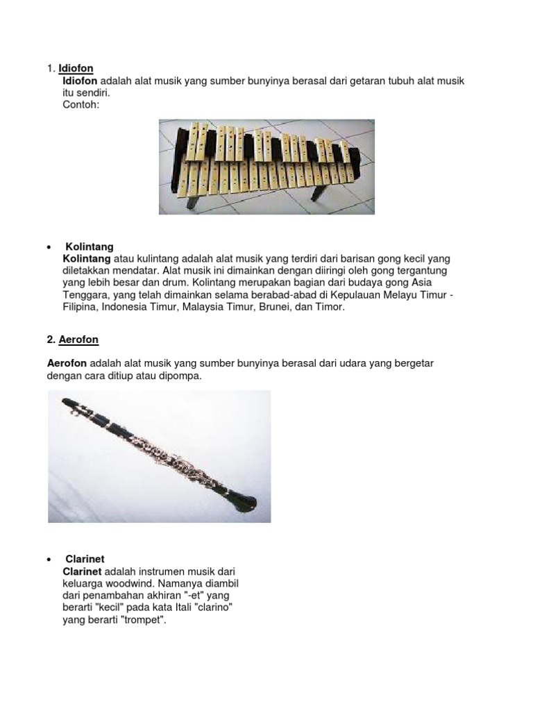 Idiofon idiophone adalah sebuah alat musik bedasarkan instrument yang sumber bunyinya berasal dari bahan dasar alat musik itu sendiri. Hampir dari semua instrumen musik jenis aerofon diklasifikasikan sebagai alat musik tiup. Alat musik aerophone terompet. Itu tadi pengertian alat musik electrophone beserta contohnya jadi perlu diketahui disebut alat musik electrophone karena bunyinya berasal atau dikuatkan oleh listik. Aerofon adalah alat musik yang sumber bunyinya berasal dari hembusan udara pada rongga instrumen. Berikut ini adalah beberapa contoh alat musik jenis aerofon.