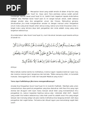 Surat yusuf ayat 31 merupakan surat yang sudah tertulis di dalam al quran yang di turunkan untuk nabi yusuf as. Salah satu nabi yang termasuk dalam pelajaran nama nama nabi yang berjumlah sebanyak 25 nabi adalah nabi yusuf. Cara mengamalkan surat yusuf jarak jauh doa yang paling terkenal untuk pengasihan orang yang dicintai adalah menggunakan doa nabi yusuf. Sejarah nabi yusuf dan 4 khasiat mengamalkan surat yusuf surat al waqiah surat yasin. Saya yakin para pembaca semua sudah pernah mendengar seputar surat yusuf ayat 31 ini. Contoh surat yusuf ayat 4 pelet.