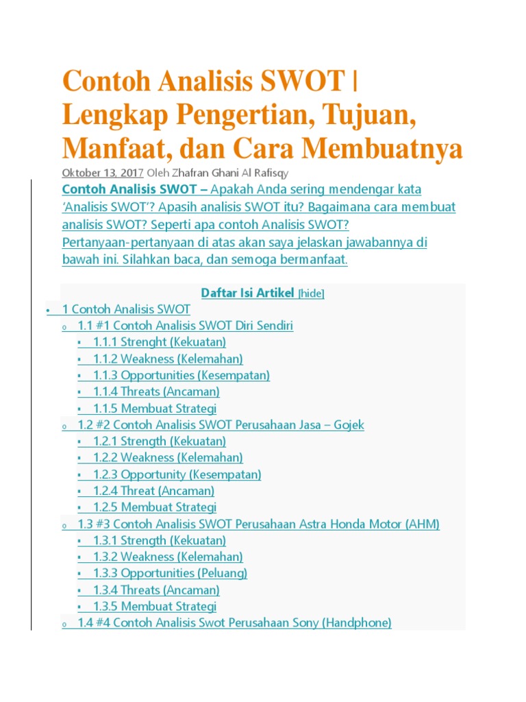 Menggunakan metode analisis swot diri sendiri untuk mengetahui kepribadian atau sebagai bahan evaluasi untuk lebih fokus terhadap tujuan hidup. Misalnya seorang siswa bernama vishal aji yang baru saja lulus dan ingin menjadi seorang gamers. Analisis swot menggambarkan apa yang terjadi bukan sebagai pemecah masalah. Saya akan mencoba untuk menganalisis swot yang ada pada diri saya mulai dari sekarang hingga 5 taun yang akan datang. Analisis swot adalah oleh dosen pendidikan 2 diposting pada 19032020 analisis swot pengertian tujuan faktor manfaat contoh untuk pembahasan kali ini kami akan memberikan ulasan mengenai analisis swot yang dimana dalam hal ini meliputi pengertian tujuan faktor. Melalui anaysis swot yang telah dipaparkan diatas maka kita sebagai pribadi dapat melakukan analysis terhadap diri kita mengenai kelebihan kekurangan kesemapatan dan ancamam yang ada dan tercermin pada diri kita untuk selanjutnya dapat dijadikan sebagai bahan evaluasi terhadap diri sendiri agar nantinya kita lebih mengenali berbagai potensi yang dapat dikembangkan dan kekurangan yang dapat.