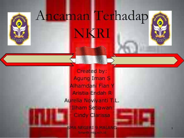 Ancaman politik dalam negeri. Karena ancaman itu asalnya tidak hanya dari luar saja namun ancaman politik juga bisa datang dari dalam negeri sekalipun. Merusak instalasi penting militer dan obyek vital nasional yang membahayakan keselamatan bangsa oleh negara lain. Contoh ancaman dari luar negeri ancaman di bidang politik dapat bersumber dari dalam negeri atau luar negeri. E aksi teror bersenjata yang dilakukan oleh jaringan terorisme internasional atau yang bekerja sama dengan terorisme dalam negeri yang bereskalasi tinggi sehingga membahayakan kedaulatan negara keutuhan wilayah dan keselamatan bangsa. Contoh ancaman terhadap nkri yang berasal dari luar negeri yang pertama adalah ancaman sosial budaya.
