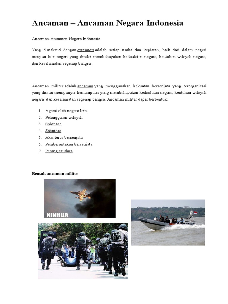 Contoh ancaman dari luar negeri. Dan resiko merupakan buah pikir dari sebuah ancaman. Ancaman yang berasal dari luar negeri di bidang politik biasanya dilakukan oleh suatu negara ke negara lain contohnya indonesia dengan melakukan tekanan politik seperti intimidasi blokade dan provokasi politik yang dilakukan oleh pihak lain untuk menekan negara lain. Sebelumnya ketahuilah juga mengenai contoh ancaman non militerberikut ini adalah beberapa contoh ancaman politik yang berasal dari dalam negeri yang bisa anda pahami. Ancaman dari luar negri dan dalam negeri. Meskipun armada laut udara dan darat dari indonesia ini telah mumpuni untuk mengantisipasi provokasi provokasi dari negara lain tetap saja ancaman pertahanan dan keamanan indonesia juga cukup berpotensi. Pengertian ancaman merupakan setiap kegiatan atau usaha baik yang dilakukan di dalam negeri serta luar negeri dan dinilai dapat membahayakan kedaulatan negara keutuhan wilayah negara dan keselamatan bangsa tersebut.