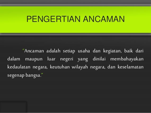 Ancaman internal kualitas sumber daya manusia yang masih kurang baik dari tingkat pendidikan maupun dari kemapuan untuk berdaya saing pengangguran yang masih banyak dijumpai di indonesia disebabkan rendahnya tingkat pendidikan tidak adanya skil dan kepadatan penduduk yang. Akhir akhir ini ancaman terhadap ideologi di negara kita menkadi saah satu issue yang hangat untuk kita bincangkan. Ancaman dari dalam berarti berasal dari kondisi dan masyarakat di negara itu sendiri. Ancaman pertama adalah ancaman non militer bidang ekonomi yang sifatnya internal. Dan ada banyak sekali cara untuk melindungi nkri dari hal yang kecil sampai besar ada banyak juga hal yang dapat kita lakukan untuk melindungi indonesia. Ancaman pertama ialah ancaman non militer bidang ekonomi yang sifatnya internal.