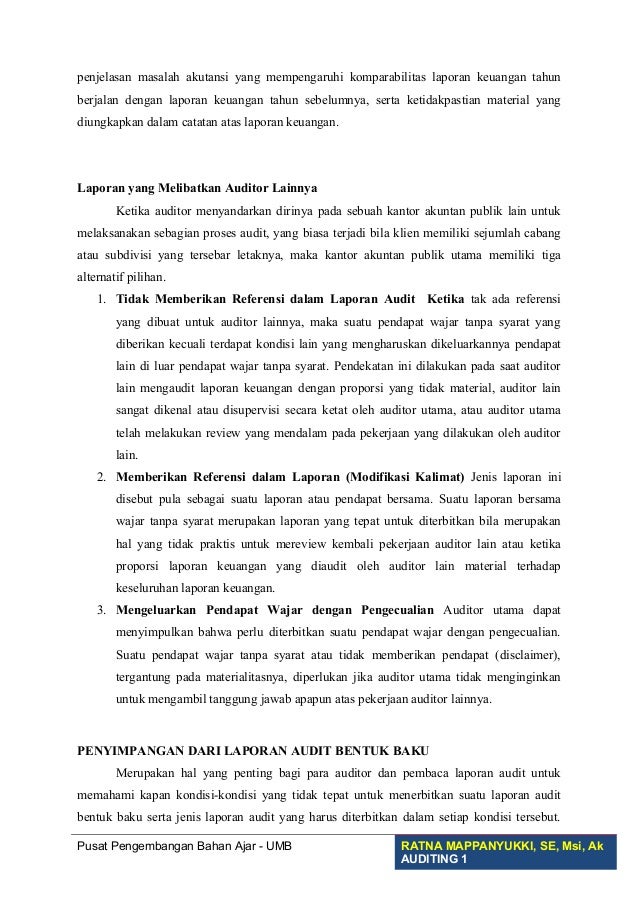 Laporan audit standar atau laporan audit baku merupakan laporan yang sudah lazim diterbitkan. We are required by standards or by law or by clients request to assess the adequacy and the effective. Hal yang sederhana namun sering dilupakan. Pencatatan akuntansi perusahaan dan. Tujuan ini dievaluasi dengan mengukur efisiensi dan faktor ekonomis dari. Laporan tersebut berisi pendapat wajar tanpa pengecualian yang menyatakan bahwa laporan keuangan disajikan secara wajar baik dalam hal yang bersifat posisi keuangan material hasil usaha dan arus kas entitas.