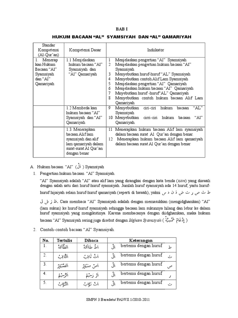 Biasanya ilmu tajwid dipelajari sejak anak anak sehingga saat dewasa kebanyakan umat muslim yang sudah lancar membaca alquran sudah mengetahui hukum bacaan al qamariyah atau alif lam qamariyah baca mendidik anak dalam islam sejak dini. Alif lam syamsiyah adalah hukum bacaan alif lam ال yang apabila bertemu salah satu huruf syamsiyahhukum bacaannya disebut idgham syamsiyah atau termasuk huruf lam syamsiyah. Al syamsiyah disebut juga idgham syamsiyah. Berikut ini contoh contoh as syamsiyah agar lebih memperjelas anda semuanya. Setelah membaca beberapa keterangan di atas coba perhatikan beberapa contoh bacaan al syamsiyah di bawah ini.