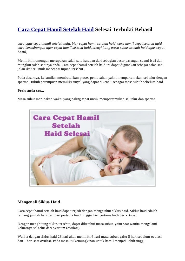 Sebagai contoh siklus terpanjang anda adalah 29 hari maka hari terakhir masa subur wanita adalah hari ke 18 setelah hari pertama menstruasi. Tips berhubungan intim setelah haid. Bulan lalu hari terakhir haid saya adalah kalau tidak salah tgl 1 mei. Ada pula mitos yang menyatakan wanita harus berbaring setelah berhubungan seks. Sebagai contoh mitos mengenai melakukan hubungan seksual dengan posisi tertentu setelah haid. Berhubungan seks di antara waktu tersebut antara hari ke 7 18 setelah menstruasi merupakan kesempatan terbaik anda untuk cepat hamil.