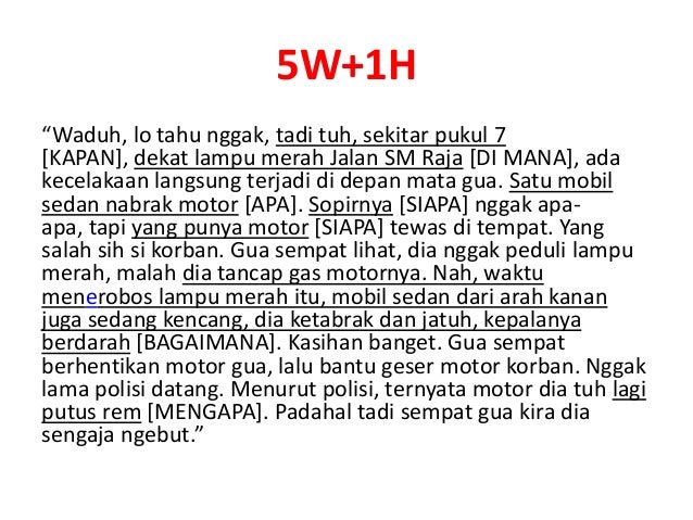 Contoh kumpulan berita 5w1h berikut berita yang mengandung unsur 5w1h. Akan tetapi saya mengembangkan 5w 1h semata mata untuk mengembangkan ide cerita. Apalagi di era digital dengan segala pernak pernik kemajuan teknologi seperti sekarang ini yang semakin memudahkan kita untuk mengakses berita apapun kapanpun dan di manapun. Berita gempa bumi. Berikut ini permasalahan tentang gempa bumi yang mengandung unsur 5 w 1h. Temukan pelanggaran kpu poso gelar pemilihan ulang.