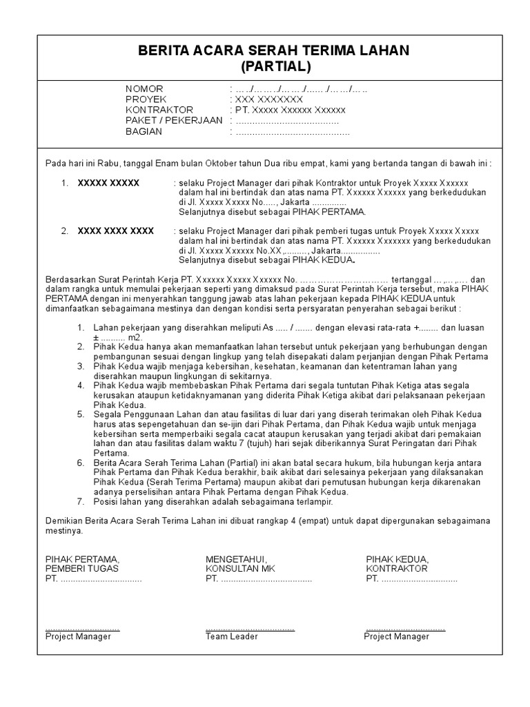 3 tahun dua ribu. Contoh surat serah terima tugas. Berita acara serah terima pekerjaan proyek. Pada hari ini 1 tanggal 2 bulan kami yang bertanda tangan di bawah ini. Berita acara adalah dokumen yang menerangkan secara detil kronologis rangkaian kegiatan atau peristiwa yang terjadi dan dapat digukanan sebagai landasan untuk proses hukum selanjutnya bila diperlukan. Demikianlah berita acara serah terima barang ini diadakan oleh masing masing belah pihak adapun barang barang tersebut dalam kondisi normal dan baik semenjak penandatanganan berita acara ini dengan begitu barang tersebut sudah menjadi tanggung jawab pihak kedua memelihara merawat dengan baik dan dipakai untuk kebutuhan tempat dimana barang itu dibutuhkan.