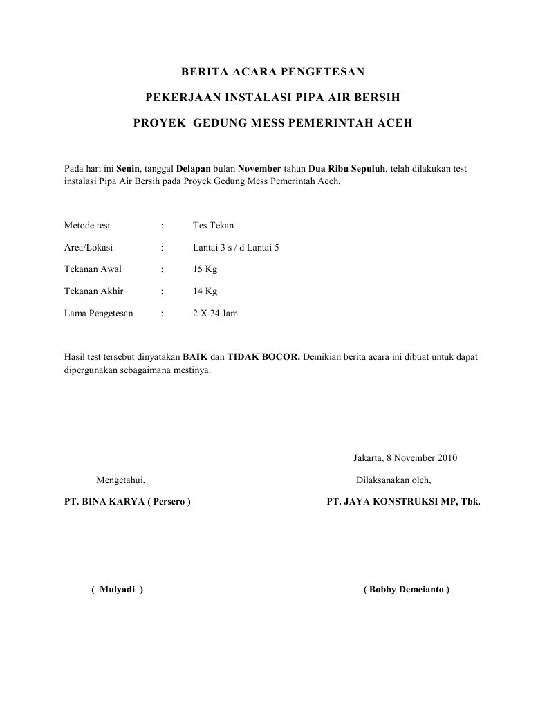 Contoh Berita Acara Commissioning Contoh Duri Cuitan Dokter