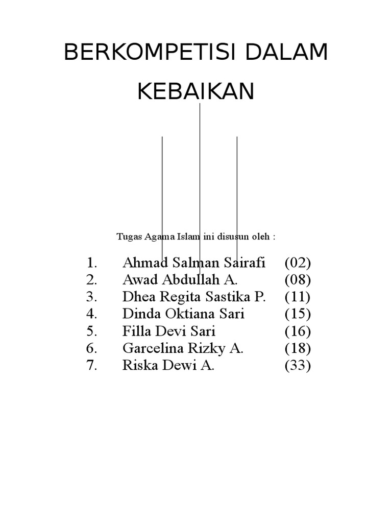 Melakukan persaingan dalam melakukan kebaikan sesuai dengan situasi dan kondisi. Berkompetisi dalam kebaikan sesuai perintah allah swt dalam surat al baqarah148 dan hadist nabi berlomba dalam menggapai dunia bukan hal yang asing lagi di tengah kita untuk masuk perguruan tinggi terkemuka kita dapat menyaksikan sendiri bagaimana setiap orang ingin dapat yang terdepan. Contoh perilaku yang menampilakan kompetisi dalam kebaikan. Melakukan kebaikan yang telah ditentukan. Tiada kata yang pantas untuk diucapkan kecuali memanjatkan puji syukur kehadirat allah swt yang telah melimpahkan segala rahmat taufik dan hidayahnya kepada kita sekalian. Berikut firman allah dalam surat al maidah ayat 48 dan surat al baqarah ayat 148.