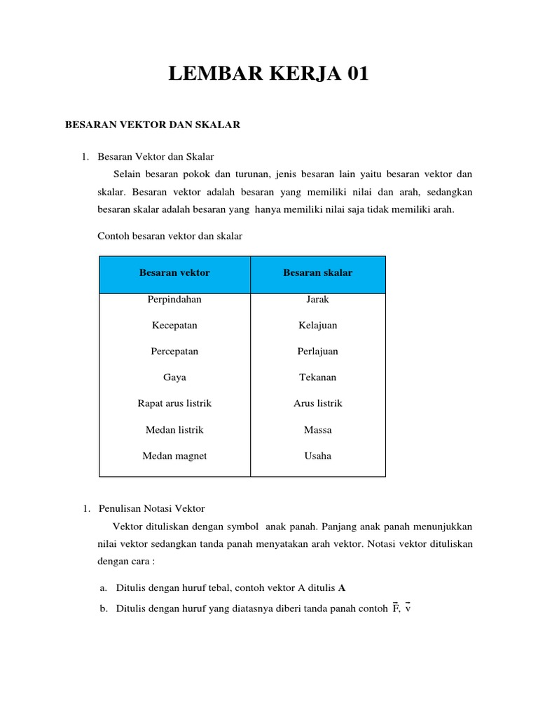 Contoh besaran vektor dan skalar. Contohnya adalah semua besaran pokok energi kelajuan usaha luas daya. Definisi besaran yaitu segala sesuatu yang dapat diukur dan dinyatakan dengan angka. Sementara besaran vektor adalah besaran yang mempunyai arah. Perbedaan besaran vektor dan besaran skalar. Besaran skalar adalah besaran yang hanya memiliki nilai dan tidak memiliki arah. Besaran vektor ditulis dengan kelengkapan nilai satuan dan arahnya sementara besaran skalar ditulis dengan kelengkapan nilai dan satuannya saja.