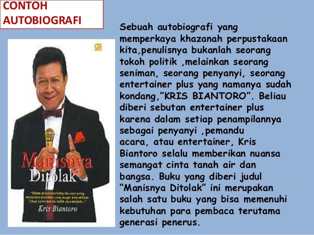 Contoh biografi seseorang singkat uprintid. Teks biografi ditulis oleh orang lain. Contoh biografi biografi adalah salah satu jenis teks yang menjelaskan tentang kehidupan seseorang secara lengkap. Contoh biografi diri sendiri biografi merupakan tulisan tentang perjalanan hidup atau riwayat hidup seseorang yang dapat ditulis dalam beberapa baris kalimat saja atau sampai menjadi sebuah buku. Suci ramadhani yang lebih akrab dipanggil uci. Biografi lebih lengkap dari sekedar tempat tanggal lahir atau tanggal meninggal akan tetapi biografi juga menceritakan tentang kejadia kejadian yang ada dalam perjalanan hidup seseorang.