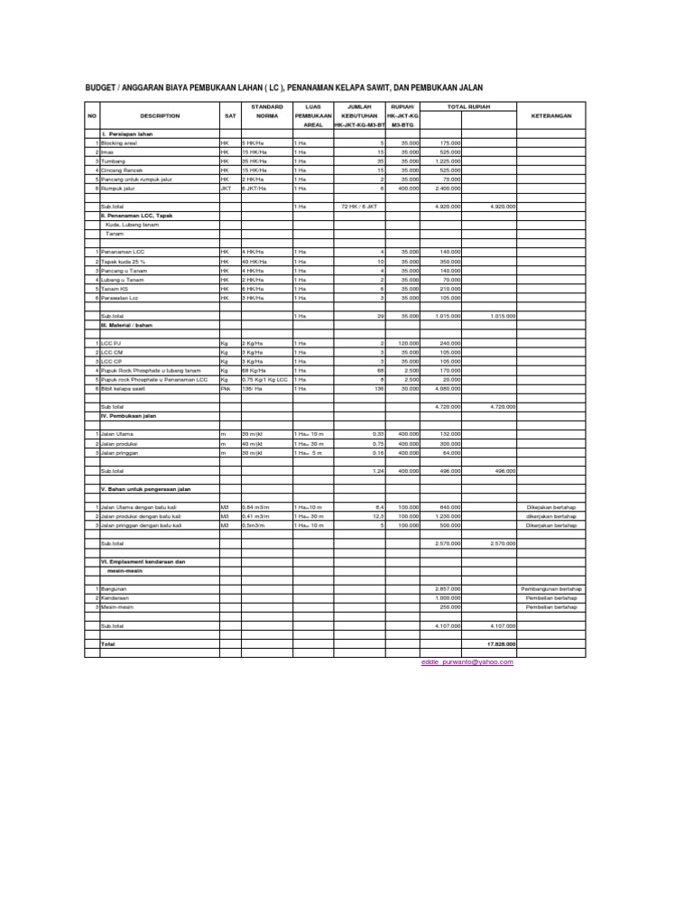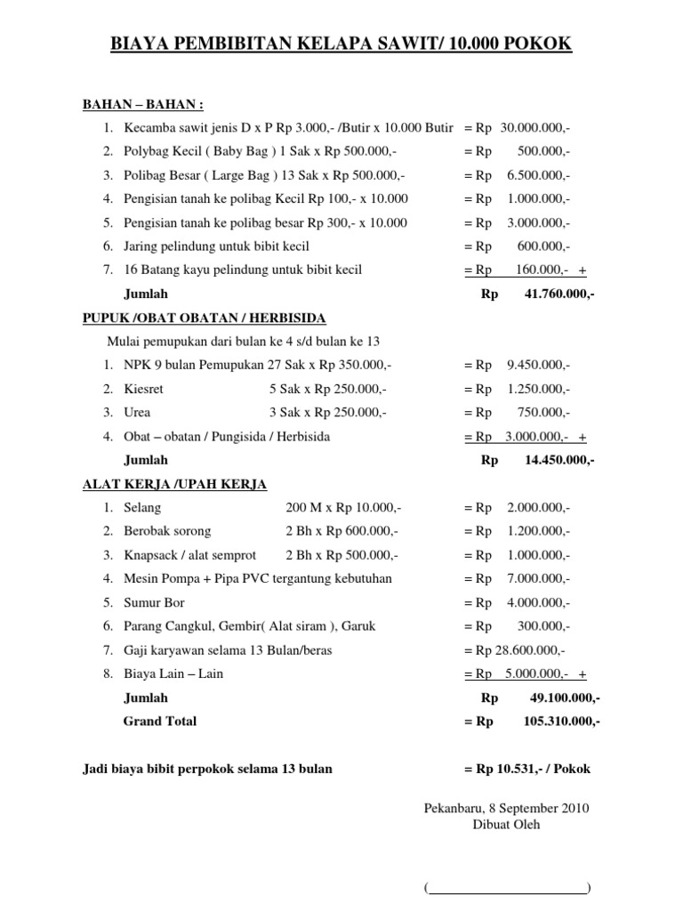 Contoh budget perkebunan kelapa sawit. Dan ini tidak rumit. Sampai beberapa waktu lalu muncul di search item blog saya tentang cara menghitung running cost sawit. Oleh sebab itu perhitungan biaya biaya yang harus dikeluarkan selama proses pengelolaan lahan harus dilakukan dengan matang. Rincian perhitungan tersebut meliputi biaya pengadaan lahan pembersihan kebun pembelian bibit pemberian pupuk pembasmian gulma serta pemangkasan daun. Kepala afdeling kepala bagian yang merupakan organisasi terdepan harus membuat rencana kerja bulanan tersebut. Administrasibga slne teambga newsinformasi perkebunan kelapa sawitperkebunansdm kompeten dan kompetitif budi s at impianclub mei 26 2018 desember 1 2019 anggaranaplikasi jankosbgabudgetinfrastrukturkapitalkongsi kerjapanenpemeliharaanperkebunan kelapa sawitproduksislnetanam nephrolepistenaga kerjaumumwilayah 5b tidak ada komentar pada bagaimana cara mengawal anggaran.