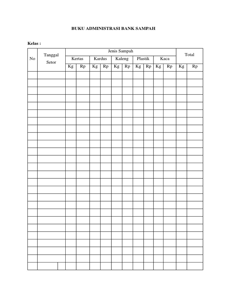 Komunitas bank sampah yang sudah mapan secara administrasi dan finansial untuk arah pengembangan organisasi. Buku panduansistem bank sampah dan 10 kisahsukses 9 719791 821 1 1515 isbn 978 979 18211 5 5 buiu panduan 10 kisah sukses memberdayakan masyarakat untuk. Seperti bank konvensional pada umumnya pengelolaan bank sampah juga memerlukan administrasi atau pembukuan dalam pengelolaannya. Jika bank sampah tersebut sudah memiliki administrasi yang baik cara kerja pengelolaan yang baik maka kualitas bank sampah dapat ditingkatkan dengan menambahkan kepemilikan badan hukum dan pembuatan buku tabungan sendiri. Jika anda mencari contoh buku besar bank maka anda berada di tempat yang tepatblog contohkri memiliki banyak koleksi gambar seperti contoh buku besar bank gambar ini tersedia dalam format jpg png gif. Anda bisa mendownload atau mencetak gambar atau foto contoh buku besar bank di bawah ini menggunakan printer.