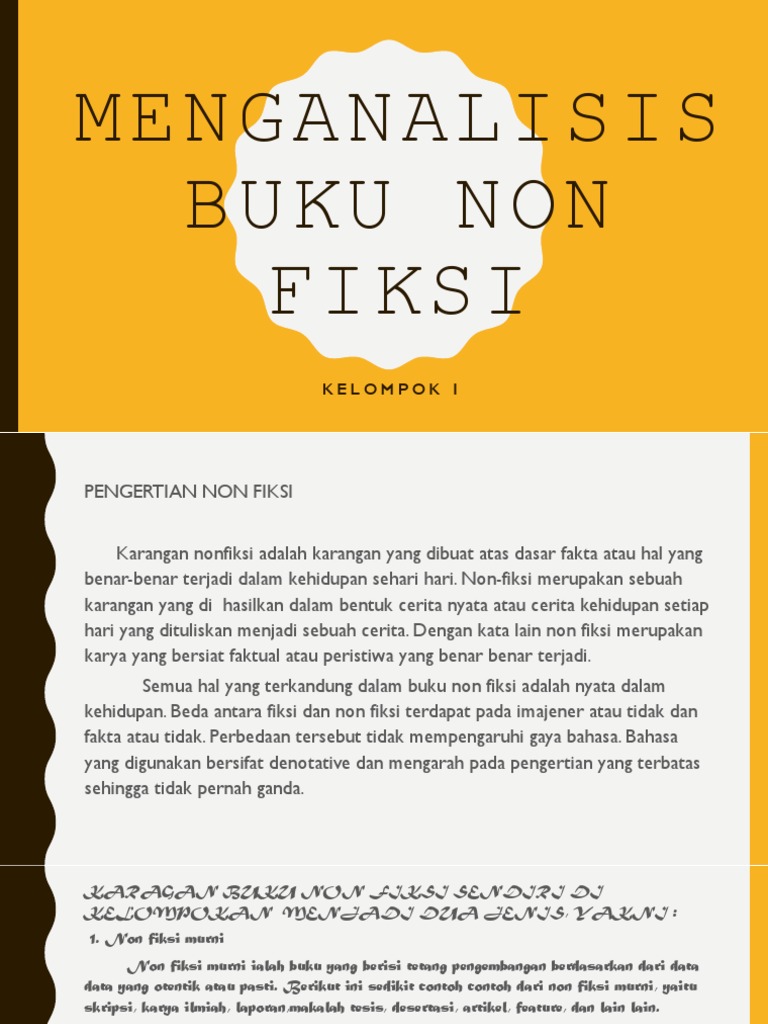Contoh resensi buku non fiksi kata resensi berasal dari bahasa belanda resentie dan diterjemahkan juga ke dalam bahasa latin recensio yang memiliki arti mengulas kembali. Buku ini berisi kumpulan tulisan para kontributor yang dimuat dalam beberapa surat kabar koran atau majalah nasional. Non fiksi kreatif adalah cerita berisi sebuah data real yang di kembangkan menjadi sebuah imajinasi dala bentuk karangan tertentu seperti novel puisi dan sebuah prosa. Cerita non fiksi memiliki 2 bagian diantaranya sebagai berikut. Selain itu cerita fiksi bisa dikaitkan dengan kejadian kehidupan nyata. Semoga dapat bermanfaat dan dapat menambah wawasan kamu tentang bagaimana caranya meresensi buku non fiksi yang baik dan benar.