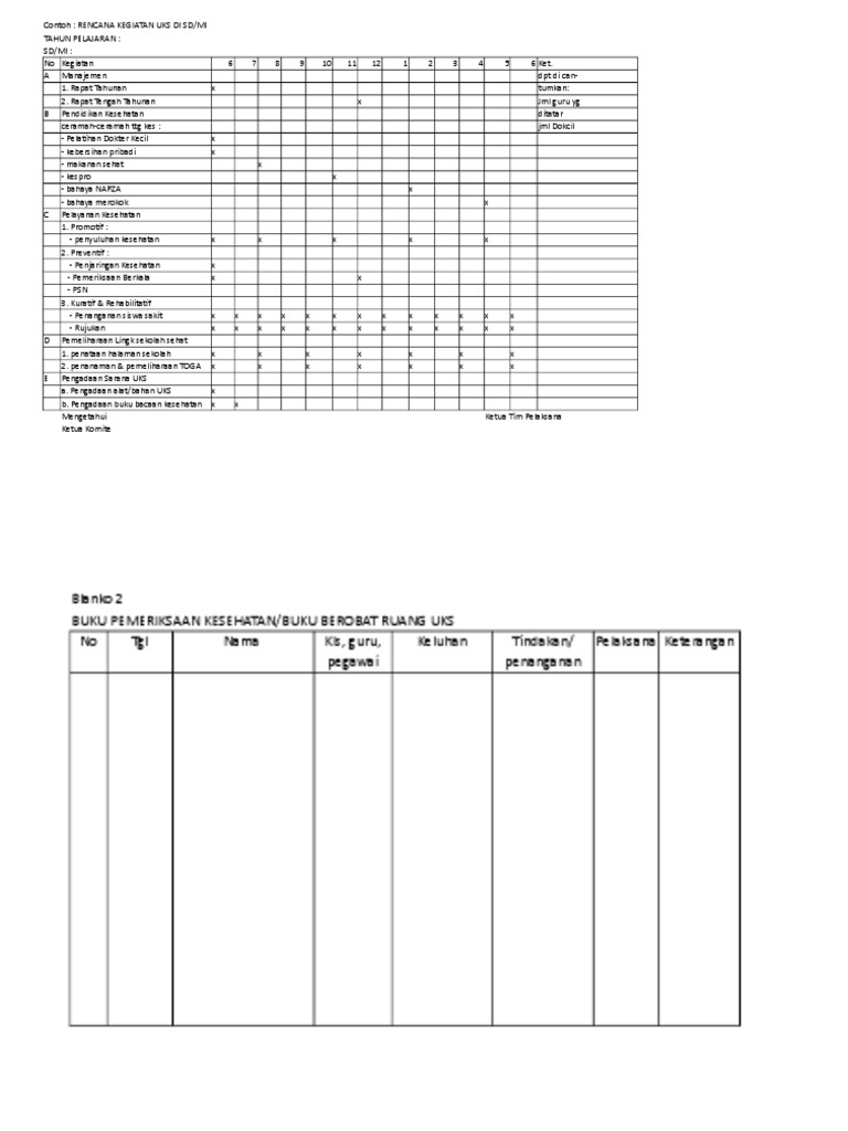 Contoh buku kunjungan uks. Berikut ini adalah kumpulan berkas file guru tentang contoh buku kunjungan uks yang bisa anda unduh secara gratis dengan menekan tombol download. Jadi anda tidak perlu khawatir untuk menyimpannya. Administrasi akreditasi aplikasi bahasa indonesia bahasa inggris beasiswa buku sd buku sma contoh download e book format formulir guru ilmu pengetahuan alam ilmu pengetahuan sosial ipa ips juknis kelas kelas 2 sd kelas 3 sd kelas 4 sd kelas 5 sd kelas 6 sd kemdikbud kemenag kepala sekolah ktsp kurikulum ma madrasah madrasah aliyah madrasah ibtidaiyah madrasah tsanawiyah mak matematika media. Buku pengobatan guru dan siswa no nama obat jenis penyakit nama siswaguru ket. Buku laporan keuangan uks klik disini buku prestasi akademik. Buku administrasi usaha kesehatan sekolah uks lengkap tujuan diselenggarakannya program uks secara umum untuk meningkatkan kemampuan hidup sehat dan derajat kesehatan peserta didik serta menciptakan lingkungan sehat sehingga memungkinkan pertumbuhan dan perkembangan anak yang harmonis dan optimal dalam rangka pembentukan manusia indonesia seutuhnya.