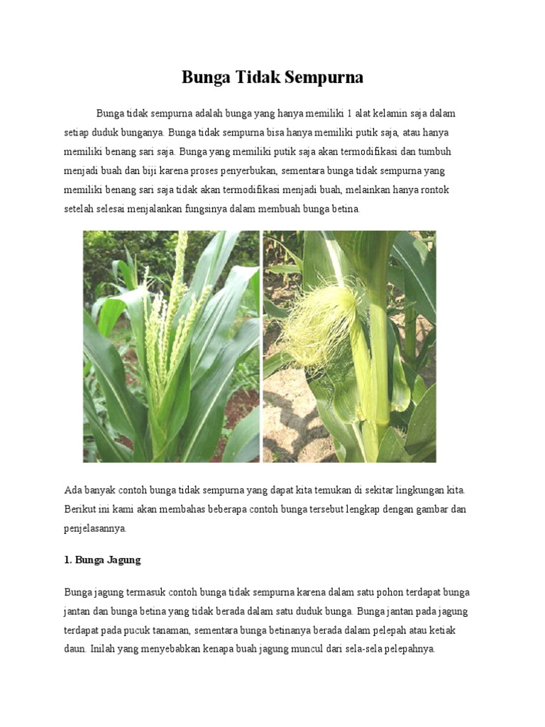 Kemungkinan besar anda tidak jauh dari bunga sempurna pada saat ini. Bunga sempurna dan tidak. Bunga jagung termasuk contoh bunga tidak sempurna karena dalam satu pohon terdapat bunga jantan dan bunga betina yang tidak berada dalam satu duduk bunga. Bunga sempurna pasti mempunyai nektar atau madu didalamnya. Bunga lengkap sangat umum mereka sangat berhasil saat mereproduksi karena mereka memiliki semua bagian dalam satu bunga. Jenis buah yang bersisik ini banyak tumbuh di daerah padang sidempuan yogyakarta jakarta dan bali.
