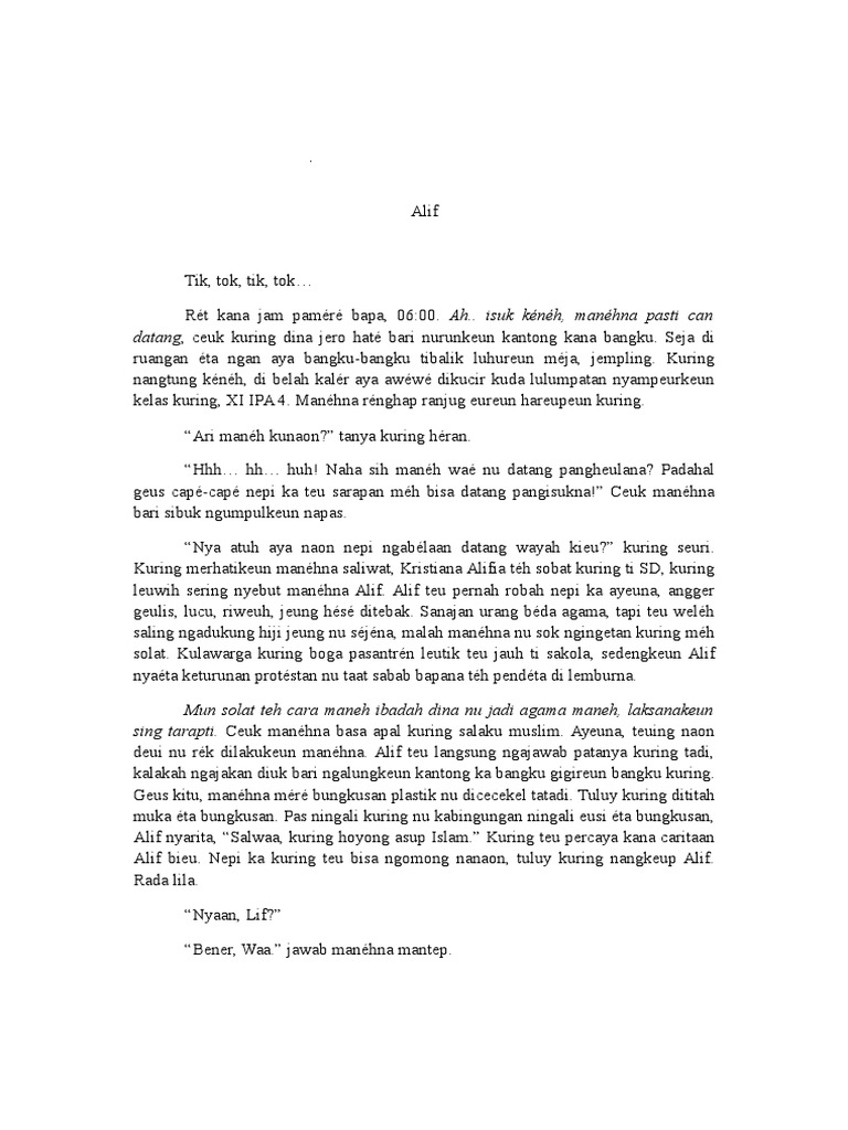 Dugi ramana ngadamel wates nganggo guci pusaka anu caina dikucurkeun terus jadi selat. 5 contoh carpon bahasa sunda monday 24 december 2012 5 contoh carpon bahasa sunda rully nurmansyah 12242012 carpon 29 comments carita pondok atawa mindeng disingkat minangka carpon nyaéta hiji wangun prosa naratif fiktif. Contoh carpon sunda murid tobat murid tobat di smpn i jagaraksa terdiri ti 750 jumlah siswadi smp eta aya 21 kelas. Contoh cerita pendek cerpen b. Berikut ini merupakan kumpulan cerpen bahasa sunda terbaru karya para sahabat cerpenmu yang telah diterbitkan total diketemukan sebanyak 44 cerita pendek untuk kategori ini. Tah kitu sasakala selat sunda sareng gunung krakatau teh.