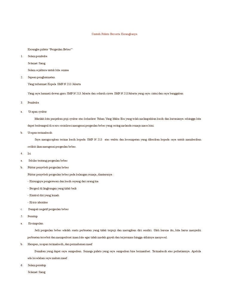 Contoh pidato singkat tentang pergaulan bebas kami akan sampaikan disini untuk bisa anda lakukan supaya teman teman dan sodara kita tahu dampak pergaulan bebas itu sangat tidak baik dan merusak diri sendiri untuk kesempatan ini admin blog contoh surat dan proposal akan memberikan disini untuk contoh pidato pergaulan bebas yang selama ini meresahkan masyarakat di indonesia. Mulai dari nikmat sehat nikmat lapang hingga nikmat yang tiada tara nilainya berupa nikmat iman dan islam. Makasi seemoga bermanfaat bgi kaum raja jman sekarang. Pengertian pergaulan bebas penyebab akibat cara mengatasisecara umum pengertian pergaulan bebas adalah salah bentuk perilaku menyimpang yang melewati batas dari kewajiban tuntutan aturan syarat dan perasaan malu. Atau pergaulan bebas dapat diartikan sebagai perilaku menyimpang yang melanggar norma agama maupun norma kesusilaanpengertian pergaulan bebas diambil karna arti dari. Contoh ceramah tentang pergaulan bebas.