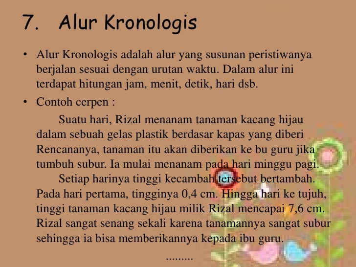 Contoh cerpen alur mundur. Alur mundur adalah suatu alur yang ceritanya dimulai dengan penyelesaian. Contoh sederhananya adalah misalnya cerpen itu awalnya menceritakan ttg seorang anak kecil dan berkembang berakhir saat dia telah remaja. Alur ini sering ditemui pada sebuah cerita yang memakai setting waktunya pada masa lampau. Contoh sederhananya adalah misalnya cerpen itu awalnya menceritakan tentangg seorang anak kecil dan berkembang berakhir saat dia telah remaja. 2 contoh alur mundur definisi alur mundur alur mundur adalah suatu tindakan yang menceritakan tentang masa lalu yang memuncak pada awal cerita dan merupakan rangkaian peristiwa dari masa lalu hingga saat ini yang tidak diatur menurut urutan kronologis peristiwa dari awal hingga akhir cerita. Sebagai contoh ketika membaca cerpen tentang perayaan hari pahlawan kamu akan menemukan ide cerita yang mengangkat masalah nasionalisme ataupun sikap rela berkorban.