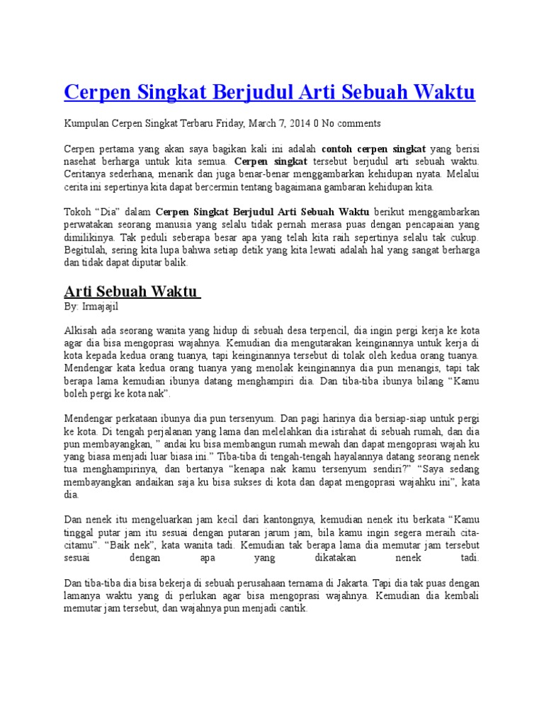 Cerpen adalah contoh cerpen singkat. Contoh cerpen singkat lucu romantis sedih tentang percintaan persahabatan pendidikan sekolah kehidupan anak yang menarik dan mengandung banyak sekali pesan moral sosial dan budaya. Selain itu cerpen atau cerita pendek cenderung padat dan langsung pada tujuannya jika dibandingkan karya karya fiksi lain yang lebih panjang seperti novella novel. Menganalisa ekstrinsik cerpen c. Cerpen cenderung singkat padat dan segera pada tujuannya dibandingkan karya karya fiksi lain yang lebih panjang seperti novella dan novel. Analisa gaya bahasa cerpen dst.
