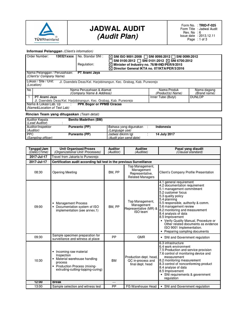 Auditee auditor audit date. Iso 90012015 sistem manajemen mutu persyaratan kisi kisi 2 bahasa.