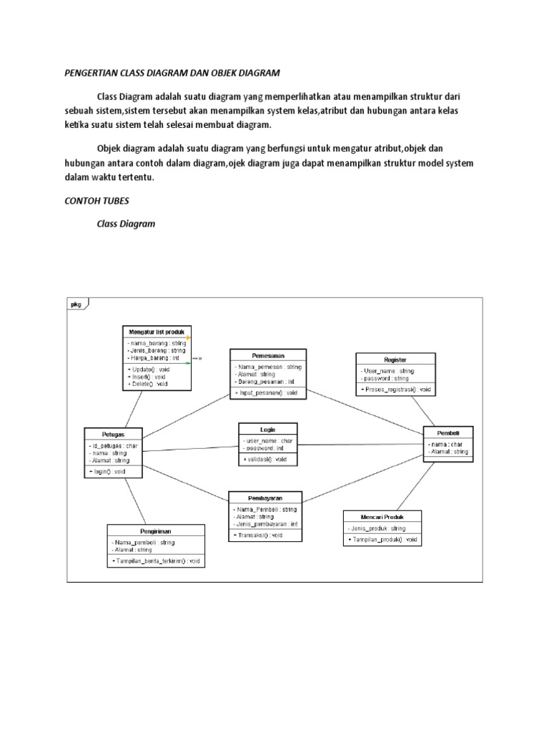 Contoh class diagram dan penjelasannya. Dimana contoh pemodelan use case digram kami buat menggunakan sybase powerdesigner 16. Class diagram mirip er diagram pada perancangan database bedanya pada er diagram tdk terdapat operasimethode tapi hanya atribut. Class diagram menggambarkan serta deskripsi atau penggambaran dari class atribut dan objek disamping itu juga hubungan satu sama lain seperti pewarisan containmet asosiasi dan lainnya. Activity diagram obat masuk. Sekilas apabila kita perhatikan class diagram ini hampir menyerupai erd entity relationalship diagram hanya saja yang menjadi pembeda class diagram memiliki operasi dan method. Class diagram adalah diagam yang digunakan untuk menampilkan beberapa kelas serta paket paket yang ada dalam sistemperangkat lunak yang sedang kita gunakan.