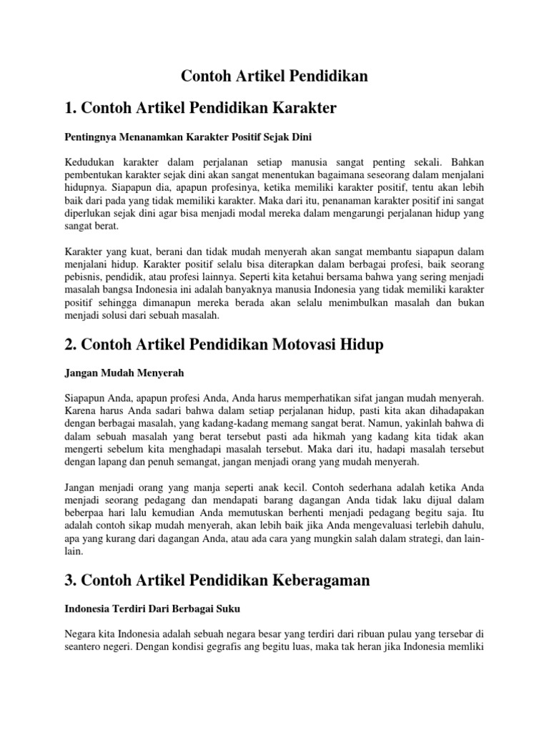 Namun banyak orang yang sudah sering membaca artikel namun belum mengetahui apa yang dimaksud dengan artikel dan berbagai hal yang berkaitan dengannya. Artikel adalah karya tulis yang terdapat dalam laporan berita esai surat kabar dan lain sebagainya. Contoh artikel pendek dan singkat jika sebelumnya kita telah memberikan kumpulan contoh autobiografi maka kita akan coba membagikan contoh artikel pendek yang kami kumpulkan dari berbagai sumber untuk memudahkan anda dalam memilihnya artikel pendek yang akan kami berikan ini terdiri dari berbagai aspek mulai dari artikel kesehatan motivasi pendidikan lingkungan dan teknologi. Ada beberapa media untuk publikasi artikel bisa di majalah koran sosial media di internet dan lain sebagainya. Khususnya bagi kalangan yang fokus pada dunia kepenulisan. Selain bentuk atau jenis dalam artikel ilmiah seperti yang disampaikan di atas dalam tulisan ini lebih jauh lagi akan membagikan beberapa contoh mengenai artikel ilmiah contoh contoh ini sendiri berkaiatan dengan artikel ilmiah kesehatan pendidikan teknik pertanian sosial hukum dan lain sebaginya.