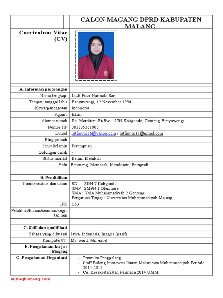 Contoh Cv Curiculum Vitae Yang Baik Untuk Melamar Magang Di