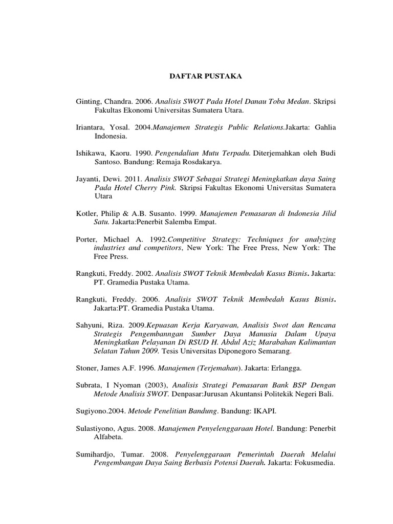 Daftar ini biasanya ada di belakang atau di akhir penulisan jenis jenis karangan ilmiahdaftar pustaka bisa bersumber dari mana saja tak terkecuali dari skripsi. Berikut adalah beberapa contoh daftar pustaka dari internet. Contoh daftar pustaka dari skripsi. Hal ini dilakukan agar pengutip terhindar dari plagiarisme. Contoh daftar pustaka terkadang juga diperlukan bagi mereka yang sedang mengerjakan tugas akhir skripsi atau pun karya ilmiah lainnya. Daftar pustaka merupakan suatu daftar yang berisi rujukan atau referensi yang dikutip dalam suatu karya tulis.