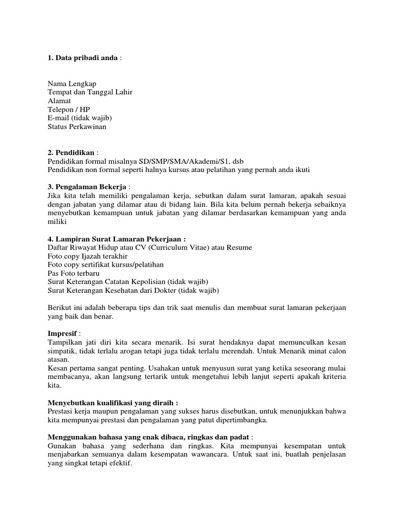 13 Contoh Surat Lamaran Kerja Yang Menarik Untuk Fresh
