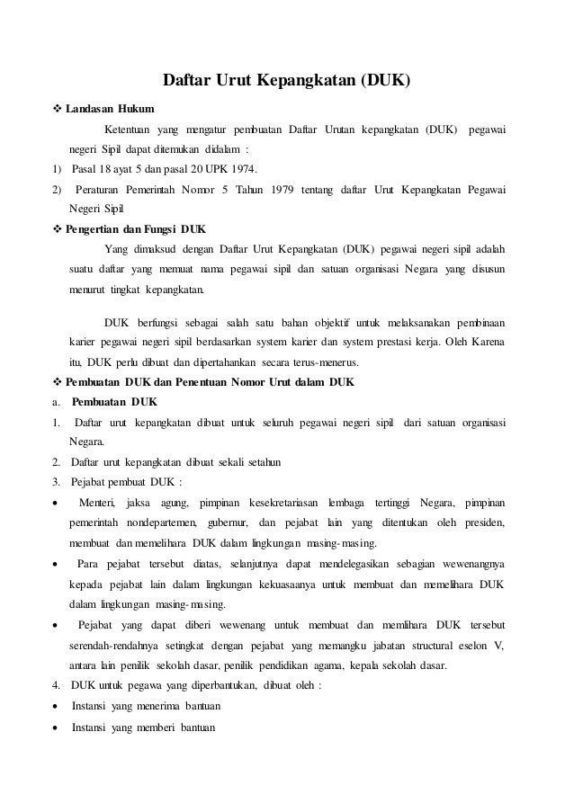 Contoh daftar urut kepangkatan. Pakaian dinas pns peraturan menteri nomor 60 tahun 2007. Peraturan pemerintah nomor 15 tahun 1979 tentang daftar urut kepangkatan pegawai negeri sipil lembaran negara tahun 1979 nomor 22 tambahan lembaran negara nomor 3138. Duk singkatan dari daftar urut kepangkatan. Penyusunan pangkat pns harus di sesuaikan dengan pangkat tertinggi bukan dari lamanya kerja pns itu sendiri yang nantinya akan menunjang administrasi pada bagian kepegawaian di satuan pendidikan baik sekolah sd smp sma sederajat maka harus dibuat duk. Penetapan urutan dalam duk. Format duk ini adalah contoh format duk terbaru 20172018 yang dapat anda jadikan referensi dalam membuat duk daftar urut kepangkatan disekolah anda.