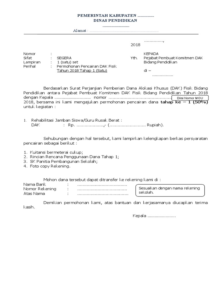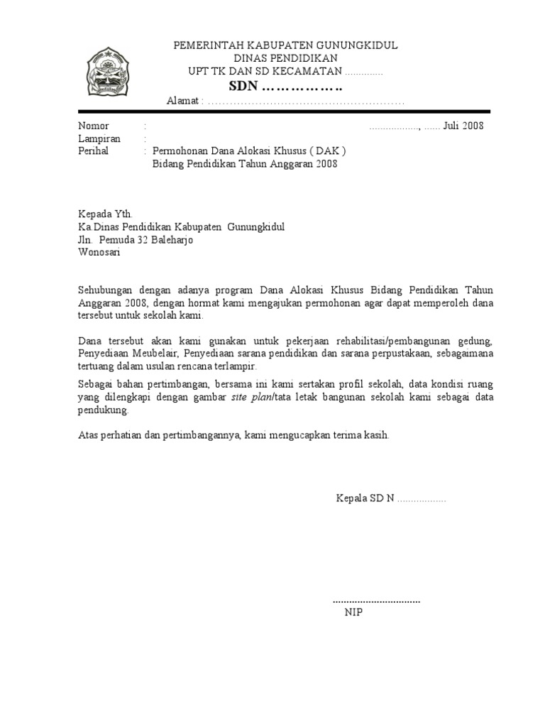 Dana alokasi khusus dak adalah dana yang bersumber dari pendapatan apbn yang dialokasikan kepada daerah tertentu dengan tujuan untuk membantu mendanai kegiatan khusus yang merupakan urusan daerah dan sesuai dengan prioritas nasional. Pendapatan apbn yang dialokasikan kepada daerah tertentu dengan tujuan untuk. Proposal kegiatan dana alokasi khusus dak bidang pendidikan untuk rehabilitasi ruang kelas dan pengadaanperbaikan meubeler ruang kelas rehabilitasipengadaan sumber dan sanitasi air bersih serta kamar mandi dan wc pembangunan ruang perpustakaan tahun anggaran 2009 dapat diterima dan disyahkan sebagai pedoman dalam melaksanakan kegiatan pelaksanaan rehabilitasi di sekolah dasar negeri 5. Dana alokasi khusus selanjutnya disebut dak adalah dana yang bersumber dari. Membantu mendanai kegiatan khusus yang merupakan urusan daerah dan sesuai.