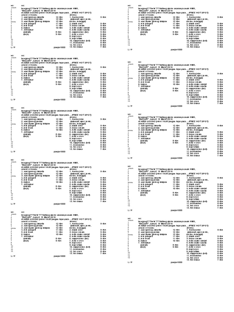 Sesuaikan kupon hadiah dengan merek anda dengan mudah. Karena intinya adalah menu makanan dan minuman serta informasi tempat bazar dilaksanakan.