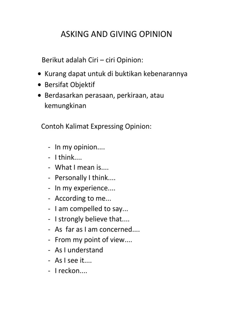 Pengertian dan contoh terbaru dialog asking and giving opinion. Have you heard that your favorite band has just released their new album. Sekian semoga contoh percakapan bahasa inggris 2 orang asking and giving opinion di atas bermanfaat. My opinion is such an expensive book. Terus belajar bahasa inggris baca juga 5 contoh memo dalam bahasa inggris resmi dan artinya. Contoh dialog asking giving opinion.