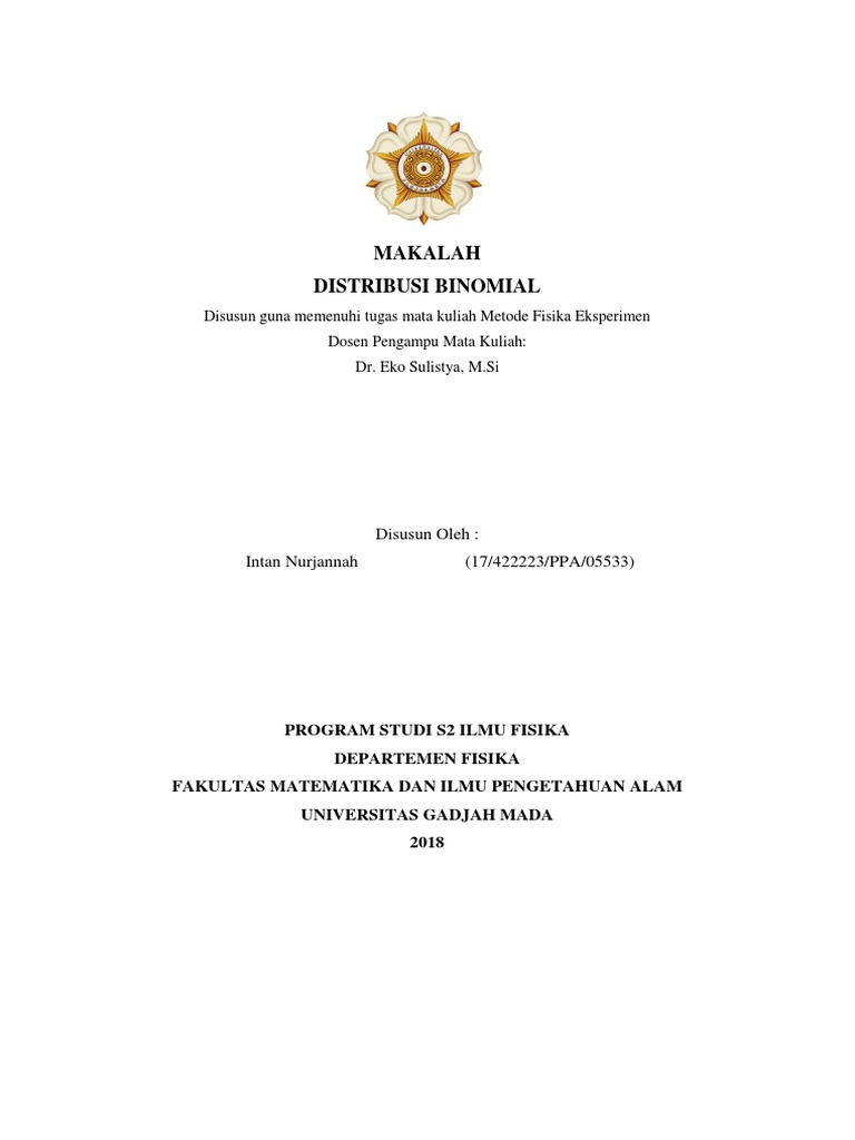 Contoh distribusi binomial dalam kehidupan sehari hari. Academiaedu is a platform for academics to share research papers. Rifqi syamsul fuadi nim. Distribusi poisson merupakan percobaan yang menghasilkan nilai nilai bagi variabel random yang bernilai numerik yaitu banyaknya sukses selama interval waktu tertentu atau dalam daerah tertentu. Makalah distribusi binomial diajukan untuk memenuhi salah satu tugas mata kuliah probabilitas dan statistika yang di bina oleh bapak adam faroqi st mtoleh. Yang paling penting dipahami adalah bagaimana menentukan. Itulah contoh soal dan pembahasan tentang distribusi binomial.