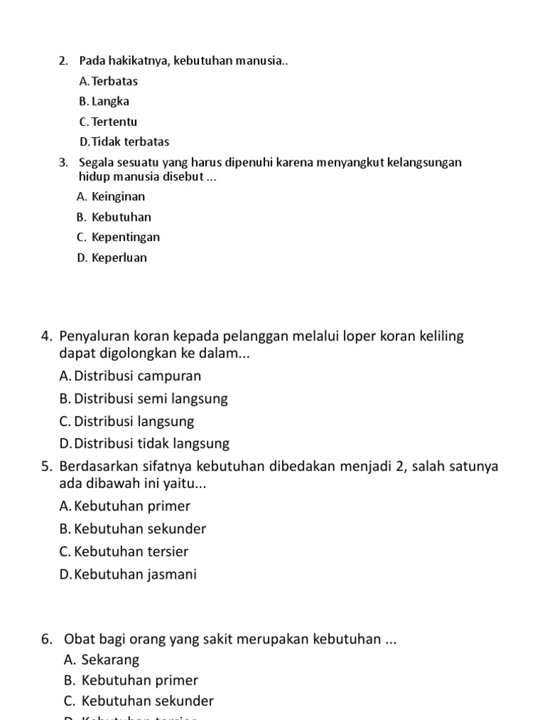 Soal Dan Jawaban Kegiatan Pokok Ekonomi
