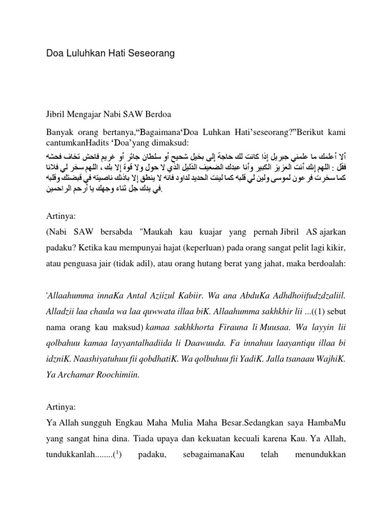 Contoh amalan doa melembutkan hati suami jarak jauh ketika anda hendak meluluhkan hati suami yang keras kepala agar nurut dengan perkataan anda maka bisa mengerjakan amalan doa setelah shalat subuh doa dibaca sebanyak 33x. Seorang hamba yang selalu berdoa berdzikir dan meminta kepada allah di setiap pekerjaan yang telah dilakukan mengindikasikan bahwa dia seorang yang benar benar percaya kepada. Demikian doa membalikkan hati seseorang atau doa meluluhkan hati seseorang semoga bermanfaat untuk anda. 15 doa agar seseorang mencintai kita dalam islam. Dan sebutkan nama lengkap dia sebagai contoh saja. Ingatkah anda pada sosok nabi daud as.
