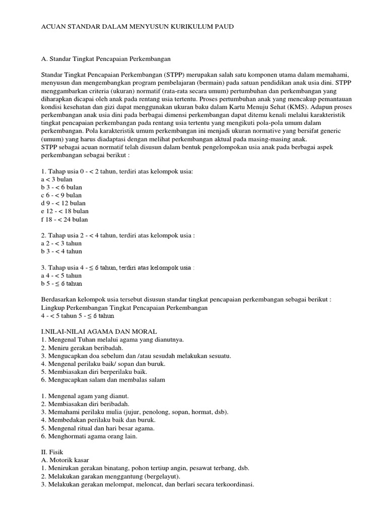 Dokumen yang dimaksud disini ialah format penilaian perkembangan anak berdasarkan pada stppa standar tingkat pencapaian perkembangan anak yang mencakup aspek nilai agama dan moral. Pengertian tingkat pencapaian perkembangan anak usia dini adalah kriteria minimal tentang kualifikasi perkembangan anak yang mencakup standar pencapaian perkembangan anak yang diwakili enam aspek nilai yaitu agama dan moral fisik motorik kognitif bahasa sosial emosional dan seni. Contoh dokumen pencapaian perkembangan anak paudtk usia 2 3 3 4 4 5 5 6 tahun ini merupakan file terbaru yang akan saya share dalam kesempatan kali ini khususnya untuk guru dalam membuat dokumen laporan perkembangan pesertadidiknya. Aspek aspek perkembangan anak usia dini. Stppa paudstandar perkembangan anak usia 0 6 tahun. Dokumen yang saya sediakan ini sudah disesuaikan dengan 8 standar paudtk.