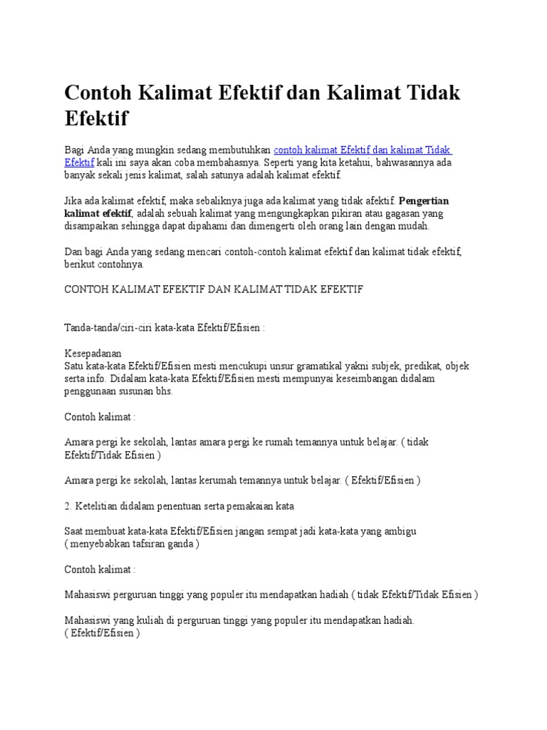 Contohnya adalah aktivitas online shopping. Perbedaan efektif dan efisien serta contohnya memang bisa di bilang antara efektif dan efisien adalah kedua istilah yang sering kali di hubungkandikaitkan. Dengan begitu maka rangga melakukan aktivitas dengan efektif tapi gak efisien. Contoh kalimat efektif dan kalimat tidak efektif kalimat merupakan bentuk bahasa yang diawali dan diakhiri kesenyapan bunyi sehingga memiliki informasi yang lengkap. Idealnya semua orang perusahaan ingin sekaligus efektif dan efisien.