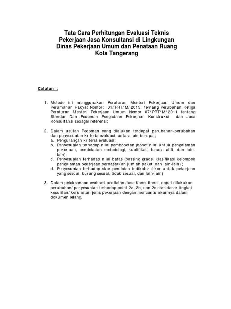 Contoh evaluasi teknis jasa konsultansi. Buku jk 09 a standar dokumen pengadaan jasa konsultansi badan usaha prakualifikasi metode dua sampul dan evaluasi kualitas kontrak harga satuan. Contoh format evaluasi teknis seleksi umumsederhana jasa konsultansi 024200 unknown dalam sbd jasa konsultansi badan usaha dengan prakualifikasi sistem 2 sampul telah dijelaskan unsur unsur yang dinilai dalam evaluasi dokumen teknis seleksi jasa konsultansi beserta bobot bobotnya yaitu pada point 24. Contoh contoh yang termasuk jasa konsultansi adalah sebagai berikut. Metode evaluasi kualitas dan biaya digunakan misalnya untuk desain jaringan irigasi primer desain jalan studi kelayakan konsultansi manajemen atau supervisi bangunan non gedung. Pebuatan yang dilarang dan sanksi 41 peserta berkewajiban untuk mematuhi etika pengadaan dengan tidak melakukan tindakan sebagai berikut. Pasal 41 3 pengadaan langsung sebagaimana dimaksud pada ayat 1 huruf b dilaksanakan untuk jasa konsultansi yang bernilai sampai dengan paling banyak rp 10000000000 seratus juta rupiah.