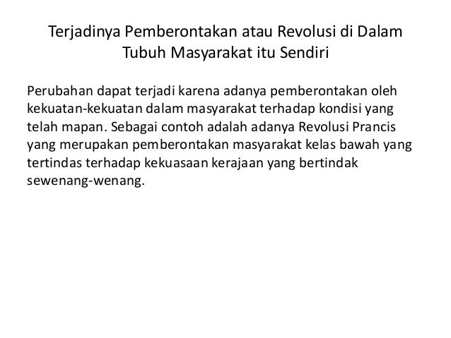 Contoh konfllik sosial penyebab perubahan sosial. Faktor penemuan baru yakni didirikannya pabrik pablik di perkotaan yang menarik tenaga kerja dari desa dan kota untuk menjadi pekerja. Faktor penyebab perubahan sosial dari contoh diatas yang bisa diidentifikasi adalah faktor internal seperti faktor demografi yakni berjumlahnya jumlah penduduk terutama di perkotaan. Sebagai contoh misalnya perempuan perempuan jawa pada abad 19 rata rata menikah pada usia 16 tahun bahkan ada yang di bawah. Yang menjadi contoh dari konflik sosial ini yang menimbulkan adanya perubahan sosial ialah adanya kasus yang terjadi dalam masyarakat lampung dan lebih tepat di kabupaten lampung selatan antara pribumi dan suku bali. Faktor penyebab perubahan sosial perubahan sosial budaya belajar itu mudah kali ini akan dijelaskan tentang berbagai faktor yang menyebabkan terjadinya perubahan sosial budaya dalam masyarakat.