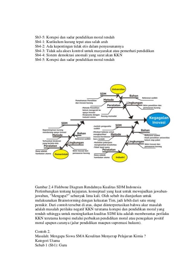 Aplikasi penggunaan diagram fishbone penelitian yang dilakukan batarfie 2006 mengenai pengendalian mutu proses produksi air minum dalam kemasan amdk di pt sinar boga ini menerapkan prinsip diagram sebab akibat fishbone analysis dalam menganalisis faktor faktor yang mempengaruhi mutu amdk. Untuk mengetahui lebih jelasnya lagi mengenai fishbone diagram atau diagram tulang ikan yuk kita simak penjelasannya dibawah ini.