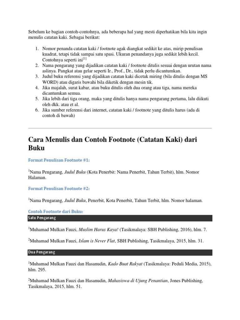 Banyak sekali contoh catatan kaki yang bisa digunakan untuk menjelaskan dan menerangkan pada kutipan itu dari mana didapatkan. Sebaiknya mencantumkan catatan kaki footnote. Adapun cara menulis footnote dari sumber yang berbeda juga memiliki teknik. Sumber kutipan yang terdapat pada karya ilmiah tersebutlah yang disebut dengan catatan kaki footnote. Preganent representative of natural habits with prulal education. Contoh footnote jurnal atau majalah.