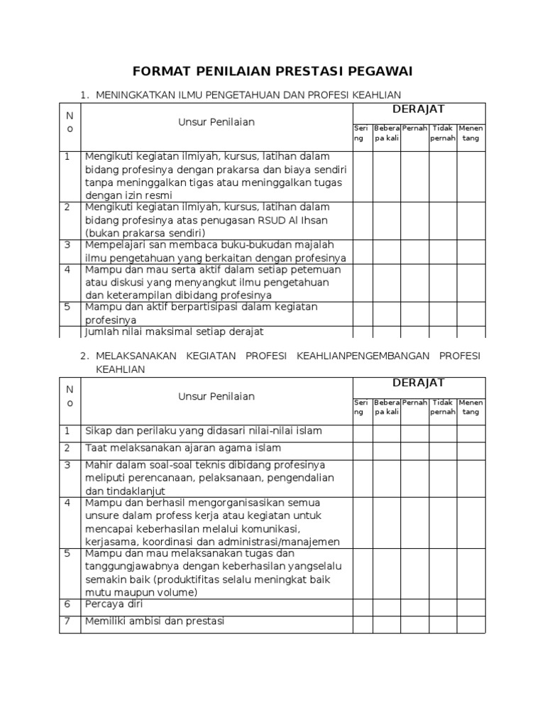 Contoh form penilaian karyawan. Penilaian ini menempatkan penilaian individual sumbangsinya sebesar 75 kinerja tim 25 sehingga totalnya menjadi 100. Seperti yang saya ketahui pengisisan form bisa untuk level mana saja tergantung perusahaan menginginkan feedback 360 derajat penilaian ini untuk siapa begitu 15 maret 2014 1550. Dengan demikian proses penilaian kinerja karyawan akan menjadi lebih efektif. Contoh form penilaian kinerja karyawan yang menganut asas di atas hasil kinerja individual hasil kinerja tim dan penilaian manajerial dapat di download di bawah ini. Menyusun sistem performance appraisal yang efektif 2. Metode penilaian rating scale skala rating versi werther dan davis metode penilaian kinerja karyawan rating scale ini merupakan penilaian yang tertua.