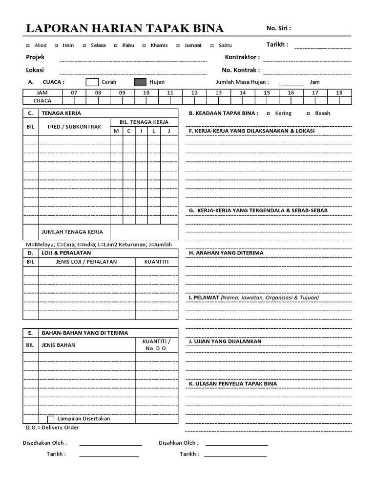 Laporan harian akan direkap menjadi laporan mingguan laporan mingguan direkap juga menjadi laporan bulananlaporan harian mingguan dan bulanan tersebut akan dibuat oleh kontraktor berdasarkan persetujuan dari konsultan pengawas untuk diserahkan kepada owner atau pemilik. Laporan pertanggung jawaban divisi hrd. Download gratis contoh sop hrd. Contoh format excel laporan bulanan mingguan harian dan jadwal pelaksanaan untuk konsultan pengawas laporan pengawasan sangat penting untuk mengetahui progress di lapangan. Dan untuk contoh format laporan harian pekerjaan proyek konstruksi sesuai stanbdart dinas adalah sebagai berikut. Laporan harian proyek merupakan laporan kegiatan proyek yang merupakan pertanggung jawaban kontraktor dalam waktu perhari.