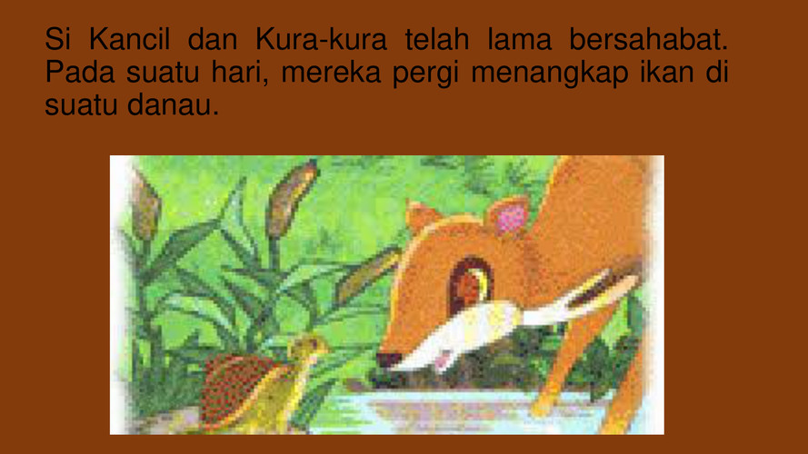 Salah satu pesannya adalah jangan menganggap remeh orang lain. Hewan kura kura air.