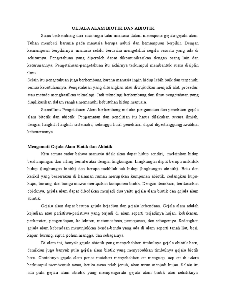 Contoh gejala alam abiotik. Peranan komponen biotik dalam mempengaruhi terjadinya gejala alam abiotik bisa dikatakan hampir tidak ada. Gejala abiotik dan biotik. Pengertian gejala alam adalah bentuk peristiwa yang terjadi secara alami dan disebabkan oleh perubahan yang berada di bumi. Karakteristik atau sifat gejala alam abiotik diantaranya yaitu wujud bentuk warna ukuran bau rasa tekstur. Pengertian contoh gejala alam biotik dan abiotik sains berkembang dari rasa ingin tahu manusia dalam merespons gejala gejala alam. Kita dapat menemukan banyak contoh gejala alam abiotik di sekitar lingkungan kita.
