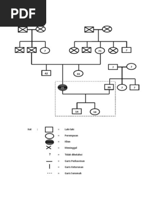 Genogram dipandang sebagai suatu metode yang cocok untuk melukiskan pengaruh keluarga dan orang tua dalam suatu model gambar tiga generasi tentang asal usul keluarga. Sifat keluarga tipe keluarga merupakan keluarga inti yang terdiri dari ayah ibu dan 7 orang anak pengambil keputusan dalam keluarga adalah kepala keluarga hubungan kepala keluarga dengan anggota keluarga cukup harmonis 3. 3 3 upvotes mark this document as useful 0 0 downvotes mark this document as not useful embed. Daftar anggota keluarga c. Genogram adalah peta atau riwayat keluarga yang menggunakan simbol simbol khusus untuk menjelaskan hubungan peristiwa penting dan dinamika keluarga dalam beberapa generasi. Semua anggota keluarga serumah 2.