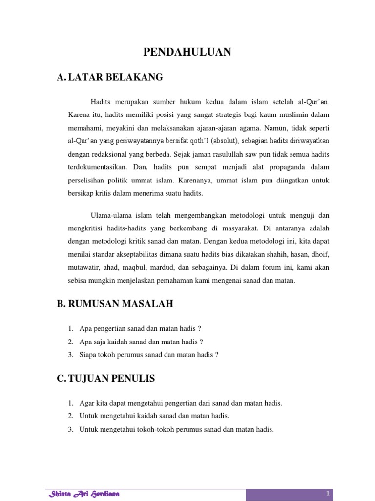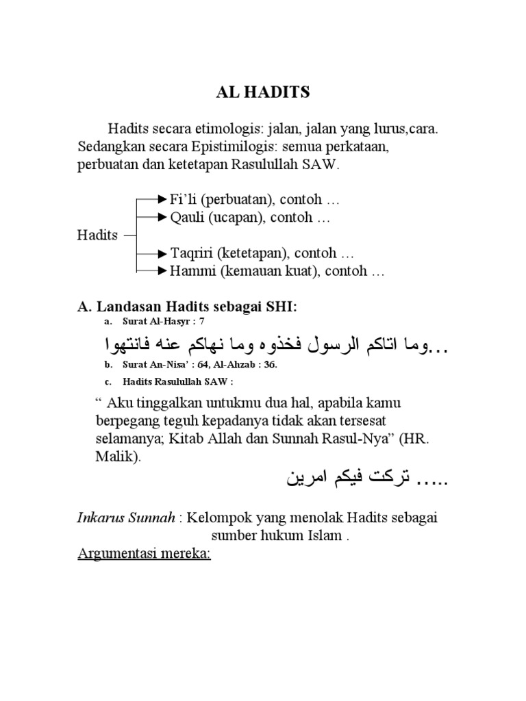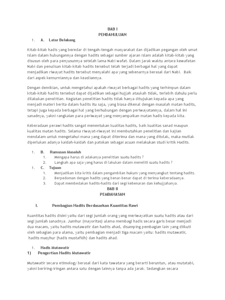 Contoh hadits mutawatir beserta sanad matan dan perawinya. 3 unsur hadist sanad matan rawi 3 unsur hadist sanad matan rawi mencari hadits dan sanadnya dengan bantuan islamweb net contoh sanad hadits shahih bukhari kabar. Contoh sanad matan dan rawi hadits. Akan tetapi semua ulama telah sepakat tentang keshahihan hadits yang dikeluarkan oleh imam bukhari dan imam muslim sehingga kita tidak perlu lagi untuk meneliti atas kedaan sanad dan perawinya akan tetapi yang mesti ingat hadits hadits selain dari imam bukhari dan imam muslim mesti kita telaah kembali akan keshahihannya. 59 2 minutes read. Doc hadits mutawatir dan ahad redha alkhausar academia edu. Seorang penyusun atau pengarang bila hendak menguatkan suatu hadis yang ditakhrijkan dari suatu kitab hadis pada umumnya membubuhkan nama rawi terakhirnya pada akhir matan hadisnya.